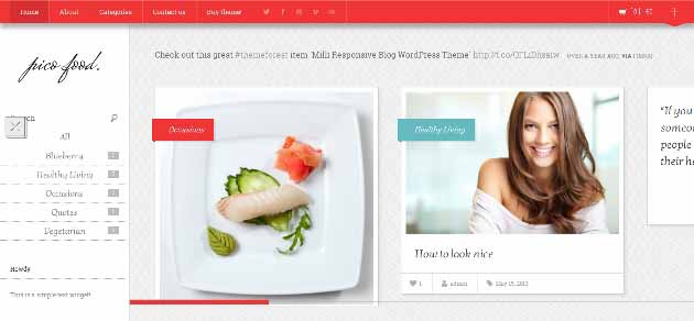 Pico takes on restaurant themes at a whole new level. Instead of offering your visitors with a header navigation, Pico uses sidebar navigation, and the content area scrolls horizontally. You can easily create recipes for your blog with this theme. Pico would be a great choice for a blog to an already existing website.