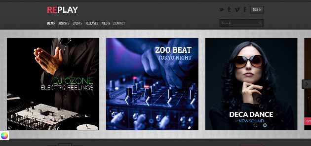While not as good for a band website, Replay is a great theme for a music news and music-related websites. The theme comes with several different custom widgets and an event manager. Replay has great social media integration, so people could easily share your content.