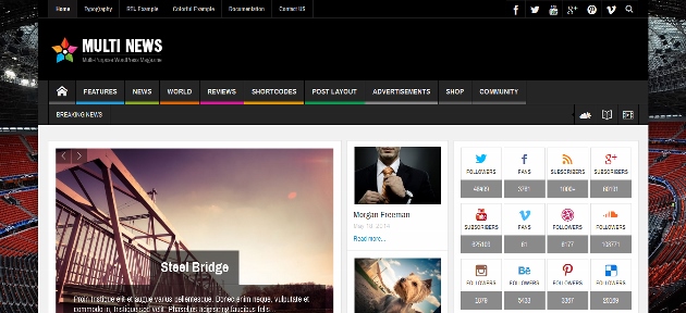 A clean, modern theme with a very good design and several ad spaces so you can monetize your website. The widgetized homepage allows you to quickly change its layout, as well as add new elements and modules effortlessly. The unlimited sidebars give great navigation flexibility to your theme. Fully responsive and retina ready, Santiago is surely a theme that you should look into.